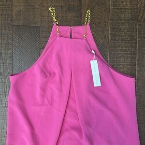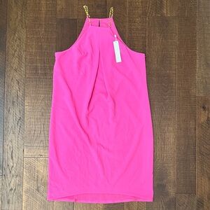 NWT Trina Turk Lucky Chain Halter Cocktail Dress Pink Fushion