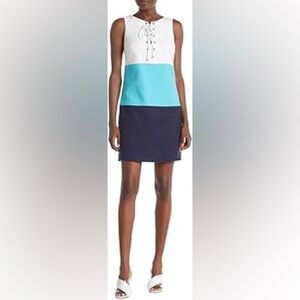 NWT Trina Turk Miss Brady Colorblock Lace-Up Dress White Blue Sz 6