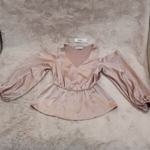 NWT Trina Turk Moonstone Flowy Feminine Top in a pale blush/champagne color, Silky, Casual, Comfy, Soft, Fairycore, Boho, Bohemian, Ren Faire, Castlecore, Business Casual, Artsy,