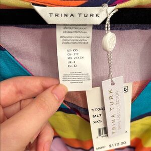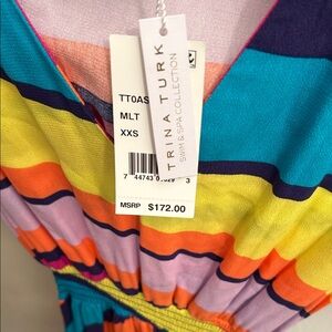 NWT Trina Turk Multicolor Asymmetrical Dress XXS Elastic Waist Resort Swim Beach