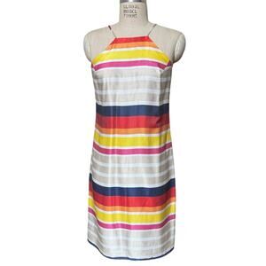 NWT Trina Turk Multicolor Bright Stripe Halter Sheath Sundress Size 4