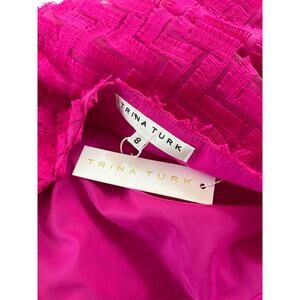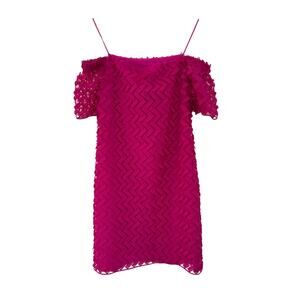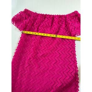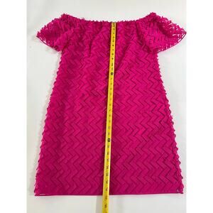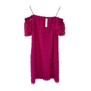 NWT Trina Turk Off Shoulder Chevron Mini Dress Womens Size 8 Pink Summer