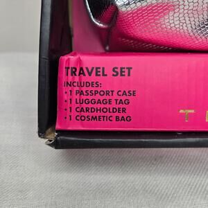 Accessories include: Passport case, luggage tag, cardholder, cosmetic bag.