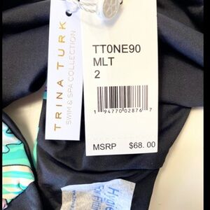 NWT Trina Turk Sintra Black Tropical Flora Halter Tankini Swimsuit Set Size 2