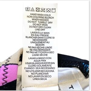 Gorgeous black floral print with contrasting stripes tankini by Trina Turk.