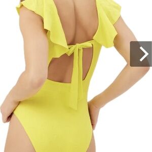 NWT Trina Turk Sway Ruffle Neck One- Piece Swimsuit in Lemongrass Size 10