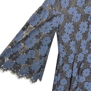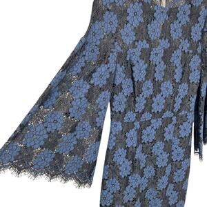NWT Trina Turk Two Tone Floral Lace Bell Sleeve Dress Womens 2 Blue Black