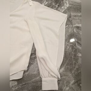 NWT Trina Turk White Women's Top blouse long sleeve cut out sleeve lagenlook size XS. Elegant white women's top with a stylish design. Perfect for any occasion. Workwear business casual and for all occasions