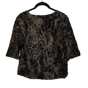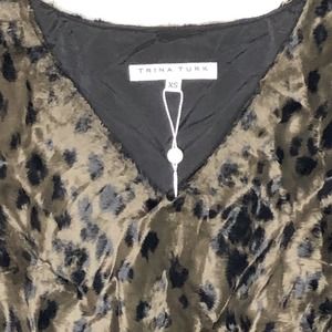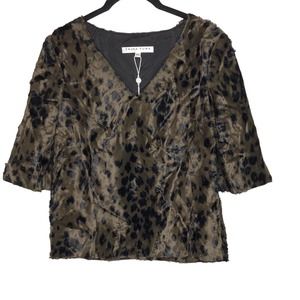 NWT Trina Turk Womens Coquette Top Blouse Size XS Faux Fur Animal Print V Neck.