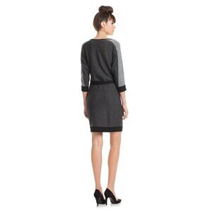 NWT Trina Turk XS Sz P Gray WOOL Belted Sweater Dress Color Block Intarsia Knit