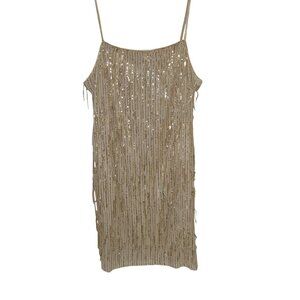 NWT Trixxi gold sequined sparkly Fringe lined bodycon shimmer dress Size Large