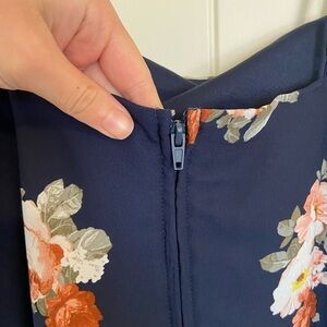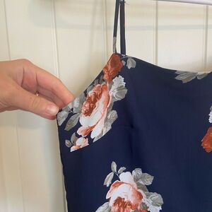 Women’s Trixxi dress. Dress is navy blue with floral pattern. Has spaghetti straps that are adjustable. Zips up the back. Fully lined. Size small. Smoke free home!