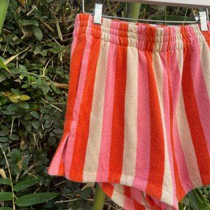 NWT Trovata striped terrycloth shorts (size S) - cream, pink and orange, pockets!!, super soft, elastic waist, never worn.