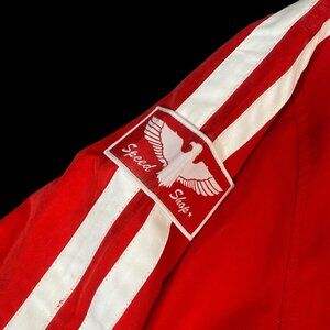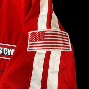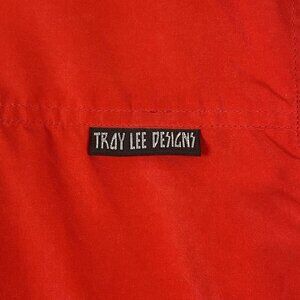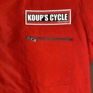 NWT Troy Lee Designs Pit Shirt XXL Full Zip. Comes with 2 removable hook and loop patches. One has Koup's Cycle and the other is a Troy Lee Designs patch. American flag sewn on patch on one sleeve and Speed Shop patch on the other sleeve. Red and white. Vent holes in pit. Zip pockets. Chest measures approximately 25" (flat lay pit to pit) and 32.75" length. I have not seen another one like this online.