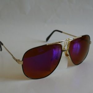 Gold Nickel Silver frame w/ black painted accents and true blue blocker lens w/ light purple iridium mirror coating lens