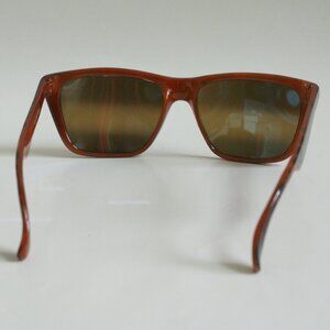 True Vintage 90's Racers Fashion Sports style in Tortoise painted pattern Frame & Amber all weather Glass lens Sunglasses w/ bi-gradient mirror on the front side of the lens & anti-reflective coating on the backside of the lens