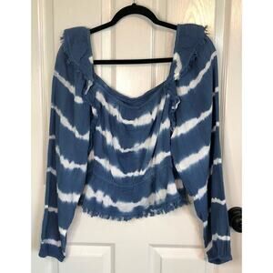 NWT True Craft Blue & White Tie Dye Raw Edge Women’s XL Long Sleeve Boho Shirt