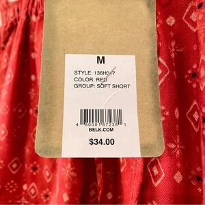 NWT True Craft Women's Medium red abstract print elastic waist frayed hem shorts