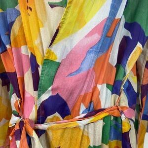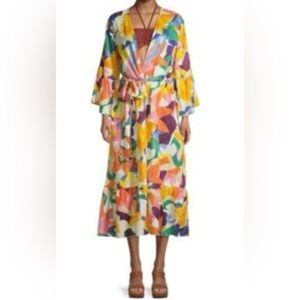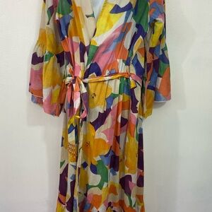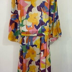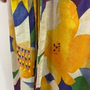 NWT True Destinations Swim Cover Up Dress Sz M Floral Beaded Belt Tiered Ruffle