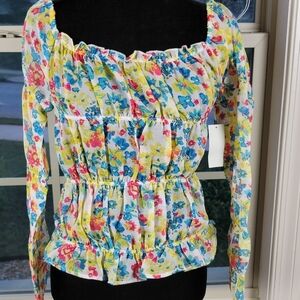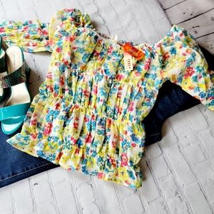 True Destiny floral smock neck & front, long sleeves & ruffle trim, wear it on or off the shoulder, simplicity is bliss!!!! JUNIORS, NWT, never worn/used