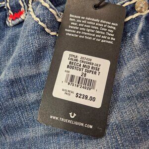 NWT True Religion Becca Mid Rise Bootcut Cut Blue Jeans Women's Size 28 $239