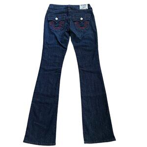 NWT True Religion Bootcut Flap Jeans 26 USA Dark Denim Lonestar Burgundy Sun Y2K