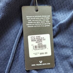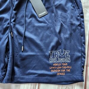New With Tags True Religion Men's "Embroidered Jersey Mesh Sweat Shorts" Navy Blue, Size XXXL.