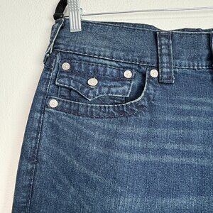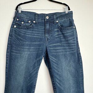NWT True Religion GENO Relaxed Slim Jeans W33 L32 Dark Wash Flap Pocket Stretch