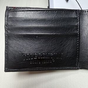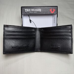 NWT True Religion Genuine Leather Bifold Billfold Wallet Black RFID Protection