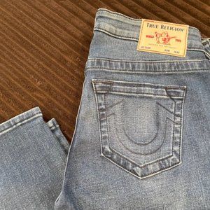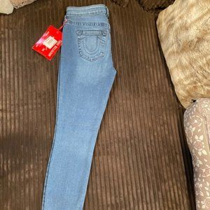 New with Tags. True Religion Jeans. Halle Mid Rise. Super Skinny Stretchy size 27. Super comfy jeans. Color: Blue Laser.