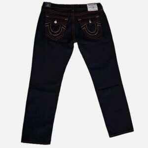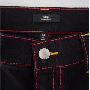 True Religion Jeans Men’s 38x32 Geno Big T Flap Slim Fit Black Rinse Denim NWT.