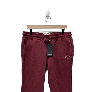 NWT True Religion Joey Mid Rise Big T Flare Sweat Pants Red Women’s Size Large