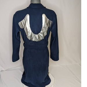 NWT True Religion Loungewear Mens Fleece Robe Navy With Silver Logo Size Small