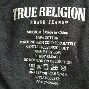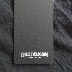NWT True Religion "M" Black Tee; Skater, Indie, Whimsigoth, Steampunk Chic, Cool. 100% Cotton, Shoulders: 16", Pit-Pit: 18", Length: 23", NEW - Throw on with a pair of jeans and ride your Motorcycle.