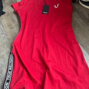 The Logo Taping Tee Dress is easy to throw on—and impossible to ignore. Made from 100% cotton, T-shirt dress features branded logo taping down the sides to highlight your curves. Finished with a notched neckline and our signature horseshoe logo at the chest, this dress keeps your style casual and True.