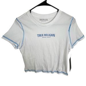 NWT True Religion Short Sleeve Contrast Stitch Baby Tee With Logo