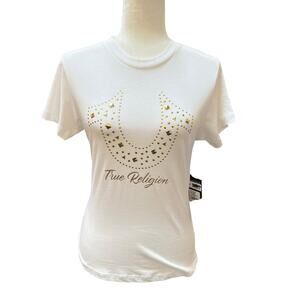 NWT True Religion Studded Horseshoe Logo Tee Women's Size XS White