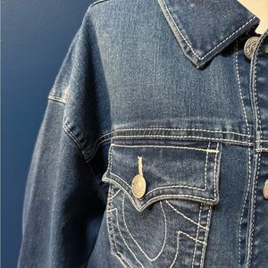 NWT True Religion Women’s Oversized Denim Jacket Stretch Logo Graphic Medium