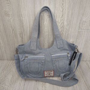 NWT True Religion Women's Denim Purse Pockets Horseshoe Logo Shoulder Bag Light