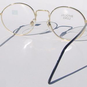 NWT True Vintage 90's Round Metal Bi-Focal Reading Glasses/Gold frame/Black Rim