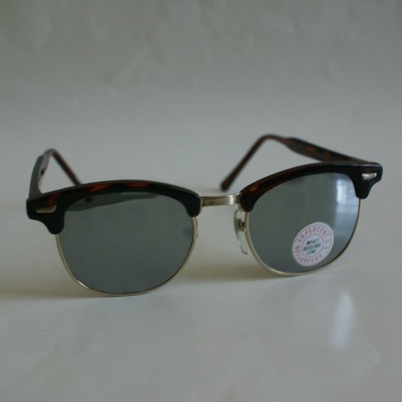 NWT Vintage Soho/Clubman style regular fit combo frame fashion sunglasses w/ smoke "GLASS!" mirrored lens
