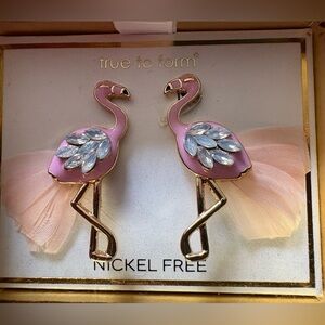 NWT True to Form Pink Flamingo Earrings with Rhinestones