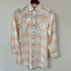 NWT TrueâCraftâSâWestern UnisexâTunic PlaidâButton DownâRaw Hem Shacket