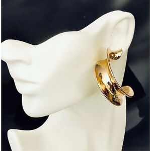 NWT True Love Gold Polished Chunky Heavy Twisted C Shape Open Hoop Earrings