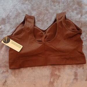 Experience unparalleled comfort with this brown bra featuring removable padding, a seamless, wireless construction, and a flattering V-neck design. Crafted from smooth, stretchy material, it offers excellent support and a versatile look for everyday wear.