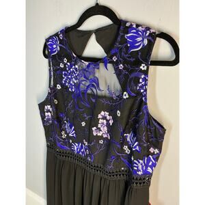 NWT, Truth & Fabel, Sz. 2XL, Black & Purple Illusion Neckline, Floral Maxi Dress