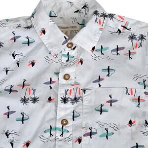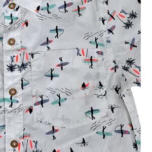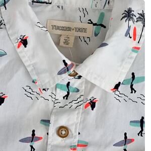 NWT Tucker + Tate Boys Short Sleeve Button Shirt White Surf Print Small 7-8