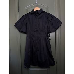 NWT Tuckernuck Black Mini Delaney Tailored Shirt Short Puff Sleeves Dress Small