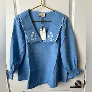 NWT Tuckernuck Cornflower Blue Emerson Embroidered Top