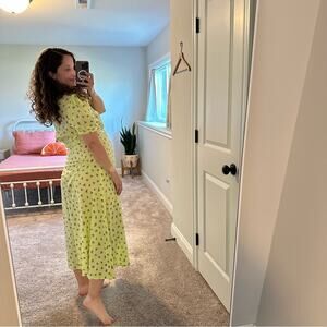 I adore this stunning new with tags Tuckernuck Faithfull The Brand lime green floral printed flattering short sleeve maxi dress